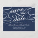 Elegantes tarjetas de 'save the date' en azul marino clásico y blanco con letras de caligrafía adornada para un look clásico y formal. Personalice el reverso con los detalles de su boda, incluyendo nombres, fecha, ubicación y información adicional como el sitio web de su boda. Espacio provisto para su dirección de retorno pre-impresa.