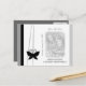 Tarjeta postal caprichosa de Mariposa Negra para guardar fecha personalizable con foto, que presenta una elegante mariposa negra con alas extendidas y un par de antenas rizadas. El borde se puede eliminar si se desea. Productos coincidentes disponibles. © Morning 6