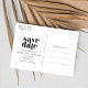Guarde las postales de fecha en un diseño sencillo, perfecto para pedir a amigos y familiares que reserven su fecha de boda. Personalizar la parte delantera de la postal con tu foto y agrega tus próximos detalles del boda a la parte posterior.