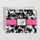Postal De Anuncios Matrimonio negro rosado de Damask Guardar las post