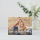 Si las circunstancias requieren que reduzcas tu boda a una micro boda, puedes hacer saber a tu lista de invitados original extendida que tu amor y boda seguirán adelante, pero ahora a menor escala con esta tarjeta postal de anuncio de boda reducida. La parte delantera presenta tu fotografía de compromiso favorita y "Mismo amor, boda más pequeña" escrito en gran letra blanca contemporánea en la parte inferior de tu foto, y debajo puedes personalizar tus nombres y el anuncio de reducción de la boda. En el reverso, puedes personalizar tu mensaje con más detalle y agregar cualquier información de transmisión en vivo virtual y sitio web de boda.