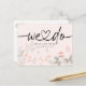 Moda floral de boda salva la postal de fecha que dice "hacemos" con el corazón conectado. Información personal en la parte de atrás.