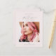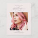Esta tarjeta postal de invitación a una fiesta de graduación de fotos color rosa negro bonito incluye un precioso tipo de letra de guión, foto frontal y detalles de fiestas con dirección de retorno en la parte posterior.