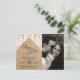 Moda e imagen elegante de encaje blanco con contorno de hoja dorada y fondo de papel reciclado marrón, tarjeta boda Save-the-Date. Diseño muy clásico y sofisticado para la pareja casada. Todas las fotos impresas.