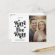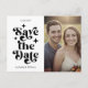 Modern Retro Typography Photo Wedding Announcement Postcard. With a modern retro typography "save the date", and a photo of the couple on the front with names and date in simple and minimal black and white, the photo template has a photo filter that you can edit. Personalize a message on the back and add a wedding web page for event details.