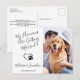Deja que tu mejor perro anuncie tu compromiso con estas tarjetas de anuncio de compromiso para perros super lindas 'Mis Humanos se van a Casar'. Personaliza con tu foto favorita, y personaliza con nombres, fecha opcional y mensaje de compromiso. Este anuncio de compromiso canino será un éxito con tu familia y amigos. DERECHOS DE AUTOR © 2020 Judy Burrows, Black Dog Art - Todos los Derechos Reservados. Tarjeta Postal de Anuncio de Boda de Perro Simple con Foto de Mascota Moderna