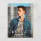 Postal de invitación de graduación de niños modernos con un diseño simple y masculino con "Graduado" en gran tipografía audaz junto con el nombre del graduado, año y escuela sobre tu foto vertical favorita de sangrado completo. El reverso tiene su mensaje personal / invitación de fiesta y dirección de retorno en un fondo azul marino sobre un fondo blanco.