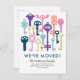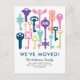 Coloridas y modernas y coloridas claves de época nueva dirección de casa que hemos movido postal de Invitación móvil