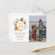 Tarjeta postal de anuncio de moderno nos mudamos foto de acción de gracias conmovedora con corona de hojas de otoño.