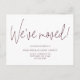 Te has mudado - haz saber a tus amigos y familiares tu nueva dirección y número de teléfono con esta sencilla y moderna tarjeta postal de anuncio de nueva casa con un mensaje personalizable en la parte trasera. Las fuentes modernas están en burdeos.