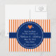 Postal De Anuncios Monograma con rayas naranjas y blancas con azul re