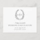 Una tarjeta de cancelación de boda es parte del conjunto de boda con monograma ovalado de hoja dibujada a mano gris oscuro que combina. Ideal para usar como tarjeta de información de boda para informar a sus invitados de una cancelación de boda o evento, o para reprogramar debido a enfermedad o circunstancias imprevistas. Sencillo diseño de corona de hojas ovaladas que encierra las iniciales de su monograma. En clásico gris muy oscuro y blanco. Otras opciones de color están disponibles. Diseño original de Sarah Trett para www.mylittleedenweddings.com