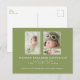 Postal de anuncio de nacimiento de Recién nacido de Collage de fotos moderno. Verde musgo.