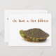 Esta divertida y conmovedora postal muestra una foto de una tortuga escondiéndose dentro de su caparazón. Envíe esta invitación humorística para que todos sepan de su nueva ubicación. Fotografía creada por la premiada fotógrafa Maria Jeffs.