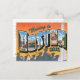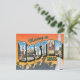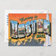 Mudarse a Boston, Massachusetts divertida tarjeta de notificación de cambio de dirección basada en una postal vintage de viaje "Saludos desde Boston" con las palabras cambiadas a "mudarse a". Escenas de la arquitectura y la historia de Boston llenan las letras y el fondo. Personaliza el texto en la parte posterior con tu información. Envía una notificación de nueva dirección retro y kitsch.
