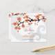 Fusión de flores de hibisco naranja Tropical Chic y espirales grises / ondas rizadas, anuncio de tarjeta postal de boda moderna y chic de verano / destino.
