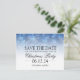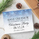 Elegante Navidades Fiesta Holiday Sparkle Azul diseño "Save The Date", nombres personalizados y texto de fecha. Impresione a su familia y amigos con este diseño elegante y moderno. ¡personalizable total! Fácil de usar y fácil de personalizar