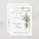 En una gama de productos para bodas y aniversarios a juego, este diseño de Save the Date es una acuarela vintage de un ramo de nomeolvides azules y lilas atado con una cinta, en estilo art nouveau.