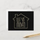 Comparte la alegre noticia de tu nuevo hogar con una elegante postal de invitación en movimiento en negro y oro. Todo el texto de delante y atrás se puede personalizar o eliminar. Cambiar "Nos hemos mudado" a "Me he mudado" u otro texto si lo desea. El diseño presenta un contorno de casa minimalista en el frente y un sencillo mensaje de tipografía moderna en la parte posterior. Esta tarjeta de cambio de dirección es una forma elegante de presentar a amigos y familiares a su nuevo hogar. La silueta de una casa la hace especialmente perfecta para un arquitecto, contratista, diseñador de interiores, agente inmobiliario, decorador de casas, o para cualquier persona interesada en el comercio de la construcción, el diseño de la casa o la arquitectura. Tenga en cuenta que el oro en la tarjeta es de color impreso no metálico, no de Relieve metalizado.