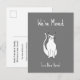 Hemos cambiado de domicilio Tarjeta postal de anuncio gris de nueva casa. Un dibujo animado de un gato sonriente puede ayudarte a enviar tu nueva dirección a amigos y familiares. La tipografía negra se puede personalizar con tu información. Ideal para instalarte en tu nuevo hogar.