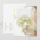 Diseño de boda adorable y editable con una hermosa novia, sosteniendo un ramo de flores frescas de primavera en el fondo.