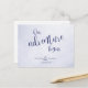 Esta simplemente diseñada tarjeta de guardar la fecha de la boda con estilo tipográfico presenta la frase "Nuestra aventura comienza" en un caprichoso estilo de caligrafía azul oscuro sobre un fondo azul y blanco moteado - su texto personalizado coincide con el azul oscuro - por katz_d_zynes