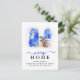 Elegante postal de invitación móvil para informar a amigos y familiares que estás cambiando de dirección con una hermosa imagen de acuarela, guión de caligrafía, nombre y dirección. Todo el texto es fácil de personalizar con la plantilla proporcionada.