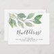 Esta tarjeta postal de anuncio de mudanza botánica está decorada con vegetación minimalista de acuarela y dice ¡Nueva Dirección! en tipografía de letra cursiva elegante.