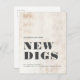 Diseño simple basado en tipografía para una tarjeta postal de anuncio de mudanza. Rústico y moderno, aviso de cambio de dirección fácilmente personalizable que hará que sea rápido y elegante compartir la noticia de tu nuevo hogar. Esta es la opción de tabla de madera blanca con estilo de tablones superpuestos.