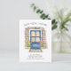 Nuestra tarjeta "Nuestra Nueva Casa" presenta un anuncio moderno de Nueva Dirección con un encantador diseño de puerta de acuarela que simboliza hermosamente nuestro nuevo comienzo. El toque suave y artístico añade calidez y personalidad, lo que la hace una forma encantadora de compartir la noticia de nuestro traslado. Captura perfectamente la emoción de instalarnos en nuestra nueva casa.