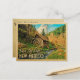 Nuevo México de la época salva la postal de la fecha con un divertido estilo retro de mediados de siglo. Cuenta con un paisaje rústico de naturaleza arbolada, con una cabaña de madera y un molino de noria, y un arroyo de riachuelo de bonito con hojas de otoño para un ambiente otoñal o de fin de verano. Esta postal de New Mexico Save The Date será perfecta para una boda de campo o naturaleza y un boda de camping.