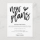 Para cuando las circunstancias significan que lamentablemente se ha hecho necesario cambiar la fecha de su boda, esta es una manera conveniente de informar a sus invitados sobre el cambio de planes y la nueva fecha lo antes posible. Este diseño artístico tiene un guión elegante conjunto en la parte superior Nuevos planes con un motivo de corazón. El resto del texto en ambos lados puede personalizar fácilmente.