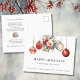 Ornamentos navideños Festividad floral Nueva tarjeta postal de Invitación en casa... ¿Te mudas durante la temporada de Navidades? En la parte delantera de nuestra nueva dirección postal de vacaciones encontrará un exquisito ramo floral acuático y adornos de navidad rojos por encima de su información de cambio de dirección. En el texto de ejemplo que aparece delante de la tarjeta se lee: "Felices vacaciones desde nuestra nueva casa" junto con tu nombre y dirección nueva justo debajo. En la parte trasera está la redacción de ejemplo para toda la información que su familia y amigos necesitarán para mantenerse en contacto y un saludo de Navidades que puede mantener o actualizar con sus propias palabras. Todo el texto puede revisarse con mucha facilidad utilizando la plantilla Personalización.