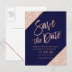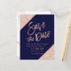Postal De Anuncios Oro rosa brillo guion azul marino salvar la fecha