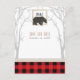 Postal De Anuncios Oso rústico rojo cuadros bosque boda guardar la fe