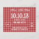 Aquí hay un divertido diseño gráfico que presenta un fondo de cuadros rojos. Ideal para guardar la fecha, recordatorios, invitaciones, citas, envíos por correo y más. Utilícelo para bodas, compromisos, graduaciones, recaudaciones de fondos, cumpleaños, aniversarios y todo tipo de ocasiones especiales. El gráfico de corazón de tiza se puede eliminar. Los estilos de fuente se pueden cambiar. Diviértete haciendo que este diseño sea tuyo.