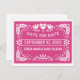 Papel picado love birds hot pink wedding Save the Date postcard featuring two love birds and a love heart with the word love as well as flowers, leaves and small dots. This nature inspired Mexican folk art style floral wedding template design is part of a wedding set or collection and is completely customizable. Note that this is not really laser cut paper just printed images. Colors: hot pink fuchsia magenta and white