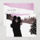 Una pareja vestida de boda, silueta, con un fondo montañoso nevado sobre este diseño romántico. Todo el texto se personaliza fácilmente.
