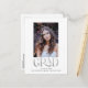 Moderna Invitación del Partido de Graduación Fotográfica de Tipografía de Relieve metalizado plateado con texto elegante y moderno junto con una foto de tamaño completo en la parte delantera. Todos los textos y colores son totalmente personalizable, perfecto para sus simples y modernos anuncios de graduación. Póngase en contacto con nosotros en cedarandstring@gmail.com si necesita ayuda con el diseño o productos de coincidencia.