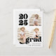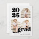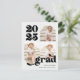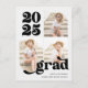 Esta moderna postal de invitación a la fiesta de graduación de tres fotos en negro y gris presenta un divertido tipo de letra retro, y una foto curvada dentro de una cuadrícula de tres fotos.