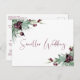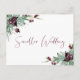 Si las circunstancias lo requieren para reducir la asistencia a su boda, puede informar a su lista original de invitados extendidos esta temporada de Navidades con esta hermosa invitación de postales boda de menor tamaño con acuarelas de vegetación estacional con bayas violetas de ciruela y "Boda más pequeño" escrito en un elegante guión coordinado de color morado. En la parte trasera puede personalizar fácilmente el mensaje de boda de tamaño reducido con más detalle y añadir cualquier transmisión en vivo de ceremonias, futuras celebraciones e información del sitio web boda.