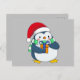 Postal De Anuncios Pingüino en un gorra Navidad con un regalo