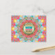 custom moving new address notification postcard : happy colourful mandala design in bright and vibrant pink, blue and orange yellow glowing lights- celebration of new home and beginnings : customizable postcard - shown here as a new address / house move announcement
