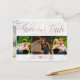 PixDezines falso oro rosa foil sobre losa de mármol blanco y fuente de letra de pincel con tarjetas postales de foto de compromiso DIY reserve nuestra fecha. Haga clic en el botón personalizar para editar.