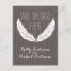 Una tarjeta postal de guardar la fecha de boda con una ilustración de un par de plumas. El fondo está inspirado en la madera de granero. Personaliza el texto.