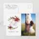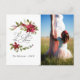 Tarjeta de felicitación de embarazo de temporada de vacaciones de acuarela floral pintada a mano de color rojo burdeos y verde personalizable con tu propia foto.