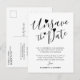 Anuncio de posposición de la boda con tipografía de fuente de escritura moderna Corazones de guardar la fecha Tarjeta postal