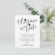 Anuncio de posposición de la boda con tipografía de letra script moderna de corazones