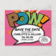 Personaliza con tus nombres y detalles para anunciar la fecha de tu evento especial. Diseño moderno y divertido con temática de arte pop de cómics, perfecto para bodas, fiestas de soltera, baby showers, bautizos, fiestas de compromiso, celebraciones de aniversario, graduaciones, fiestas de cumpleaños y otros eventos especiales durante todo el año. Un diseño genial, moderno y divertido que pone el ¡boom, zap, pow! en tu día. Diseñado por ComicBookPop© en www.zazzle.com/comicbookpop*