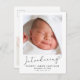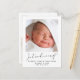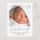 Una simple y linda tarjeta postal para el anuncio del nacimiento de un bebé neutral de género. La parte delantera incluye la foto del recién nacido, el nombre completo, la fecha de llegada y las estadísticas de nacimiento, y "Introducing" escrito en un guión elegante que termina con un corazón florecido. En el reverso de la tarjeta puede añadir una foto adicional y nombres de padres y hermanos, y un mensaje de agradecimiento, visita u otro.